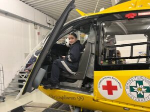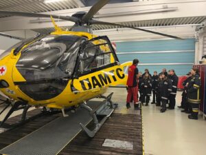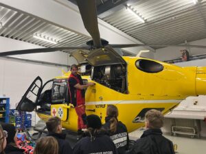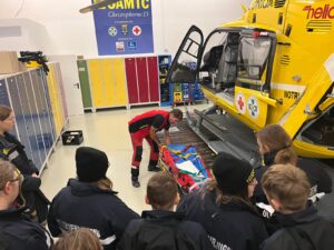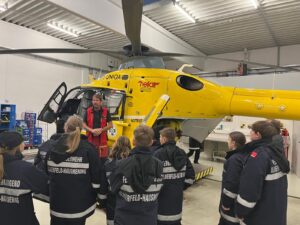 Vor Ort erhielt die Jugendgruppe spannende Einblicke in Aufgaben, Technik und Einsatzbereiche der Flugrettung. Die Jugendlichen konnten den Hubschrauber aus nächster Nähe erkunden und erfuhren, wie ein Notfalleinsatz aus der Luft abläuft.